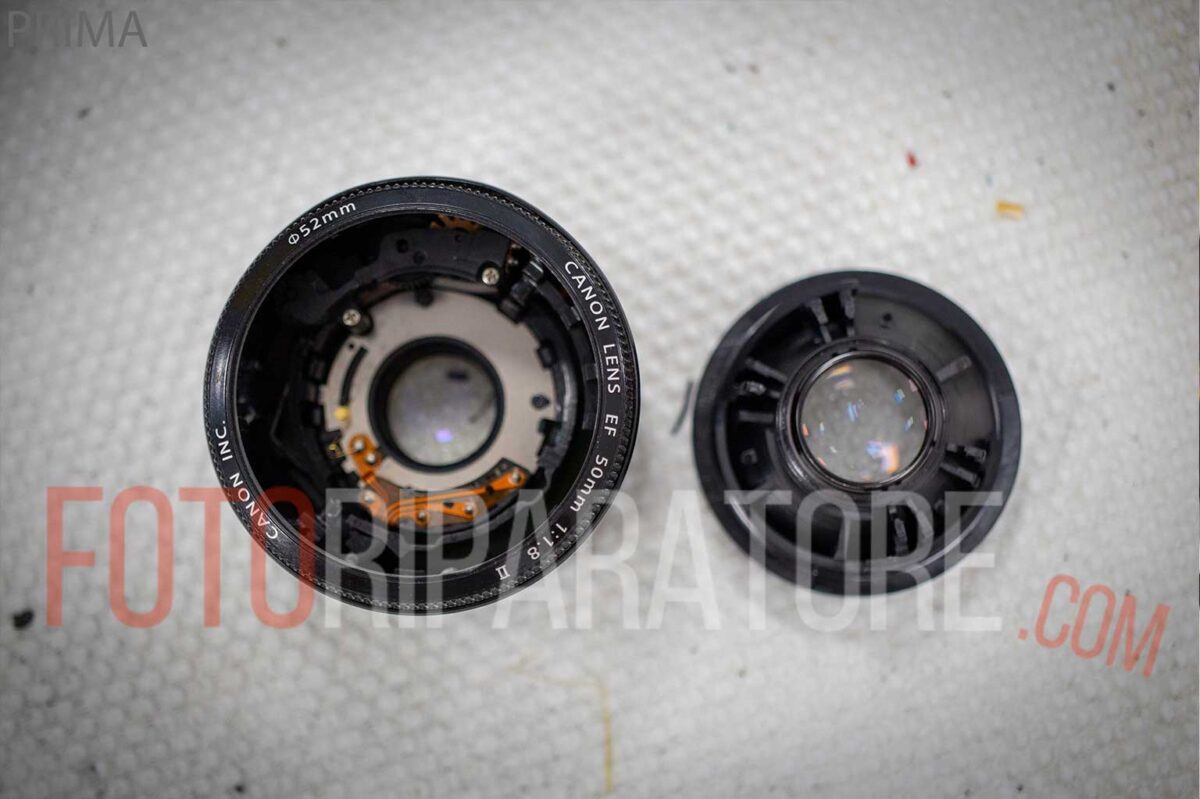 Riparazione Canon 50mm 1.8 smontato dopo una caduta