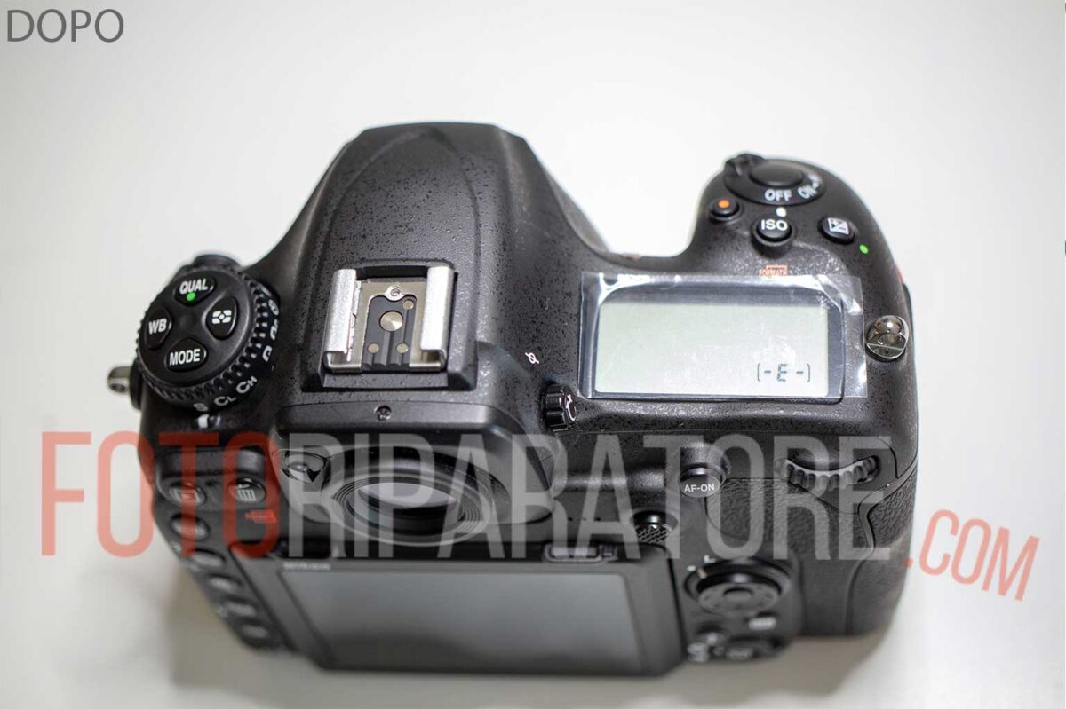 Vista la profondità del danno presente in questa Nikon D500 non è stato possibile riparare la calotta danneggiata, ma abbiamo dovuto sostituirla integralmente con un ricambio originale Nikon.